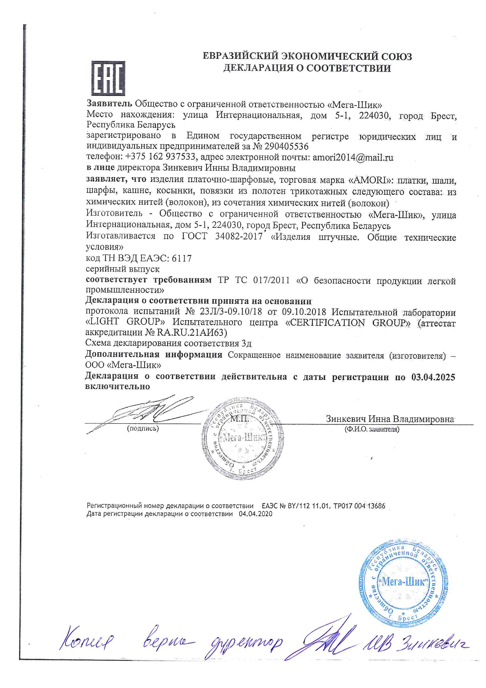 Каждой Декларации соответствия отведено место в специальном электронном реестре. По номеру декларации легко проверить правомерность и актуальность документа.