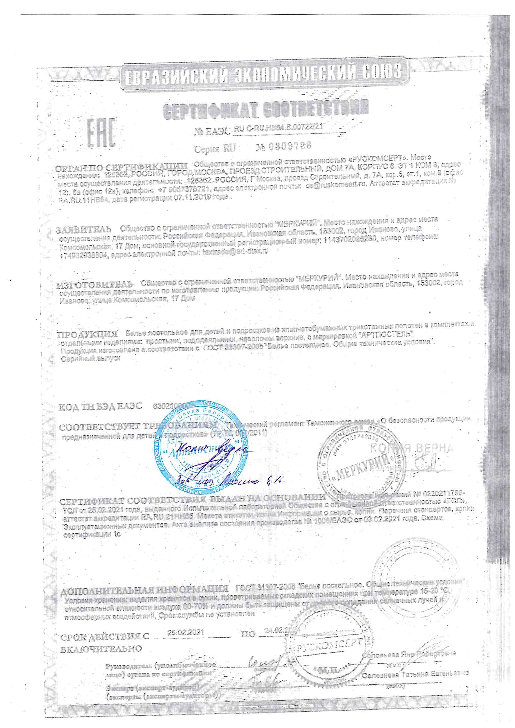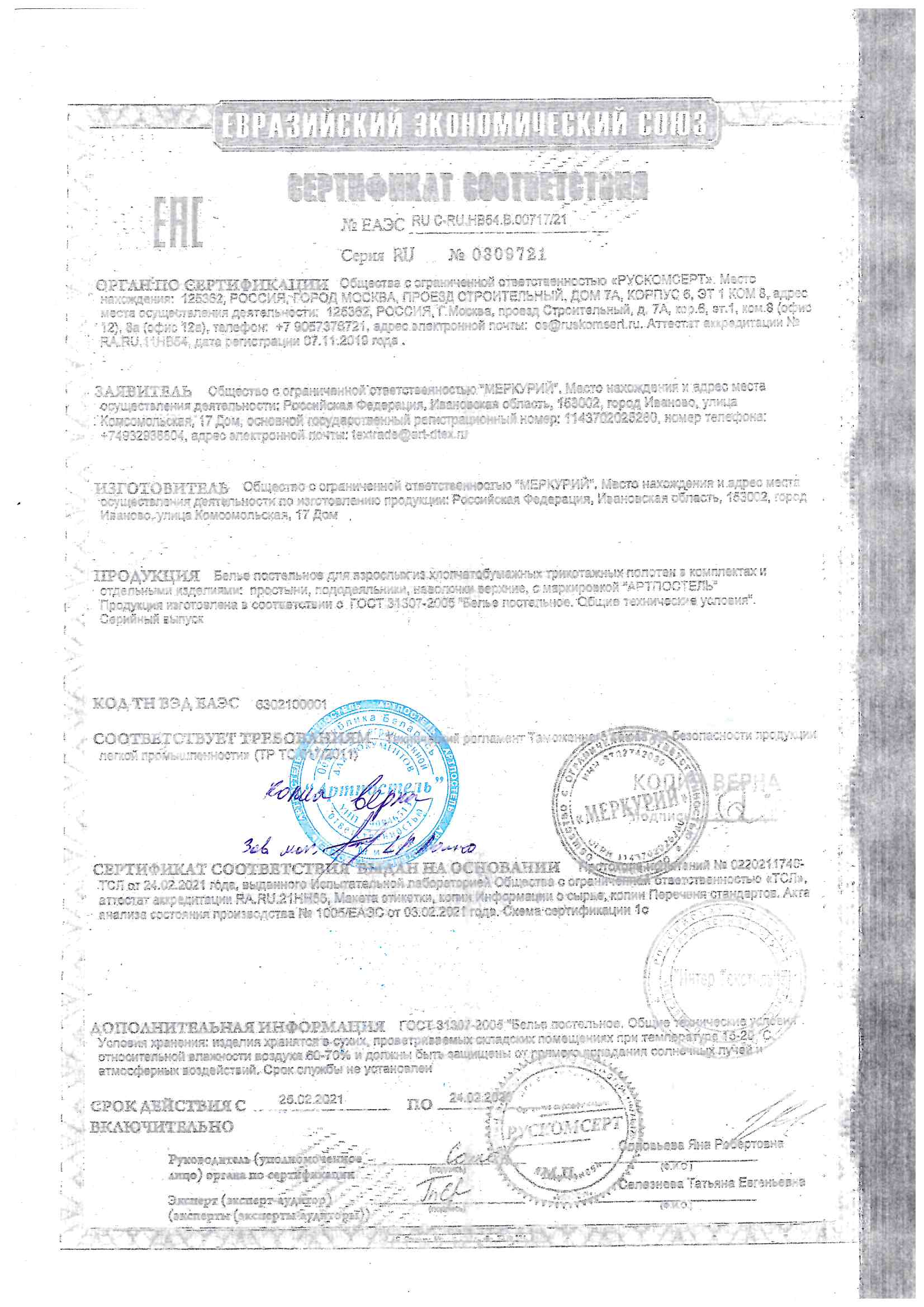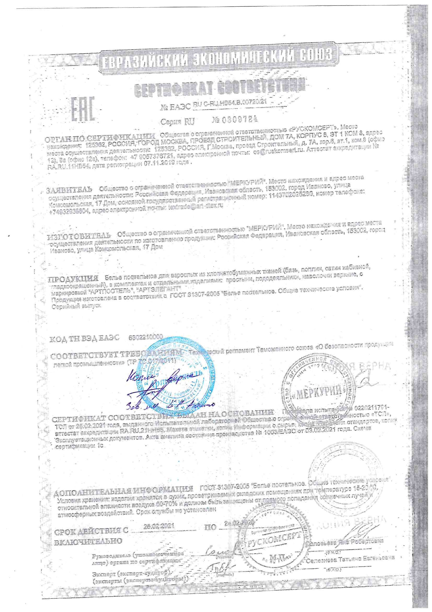 Сертификаты качества