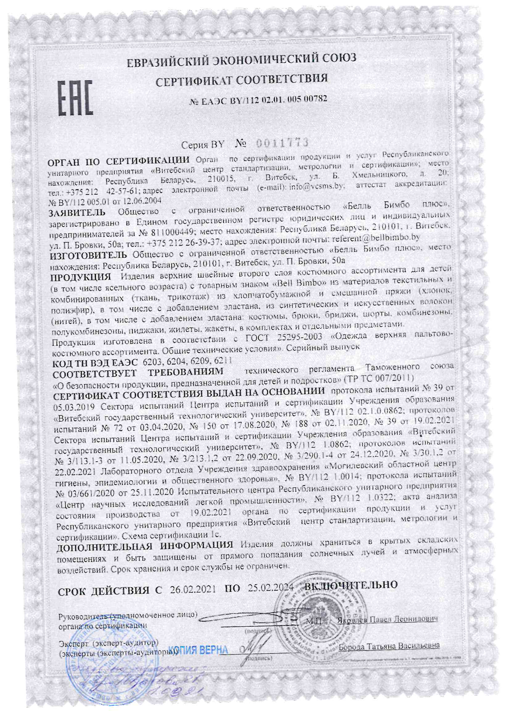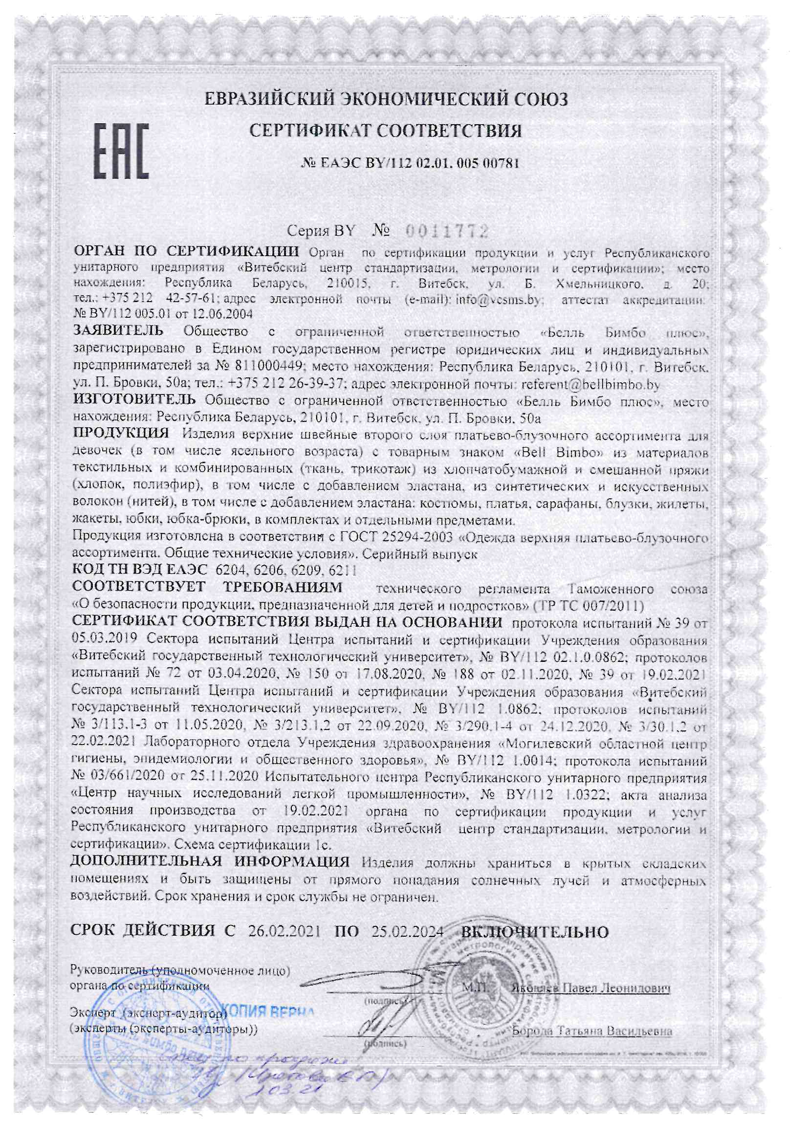Качество одежды, представленной на сайте, подтверждено Декларацией соответствия Таможенного союза. Этот документ даёт право на реализацию товара на территории России, Беларуси, Казахстана, Армении, Киргизии без дополнительных проверок внутри страны. Наличие Декларации соответствия ТС делает процесс выхода товара на рынок максимально удобным и быстрым.