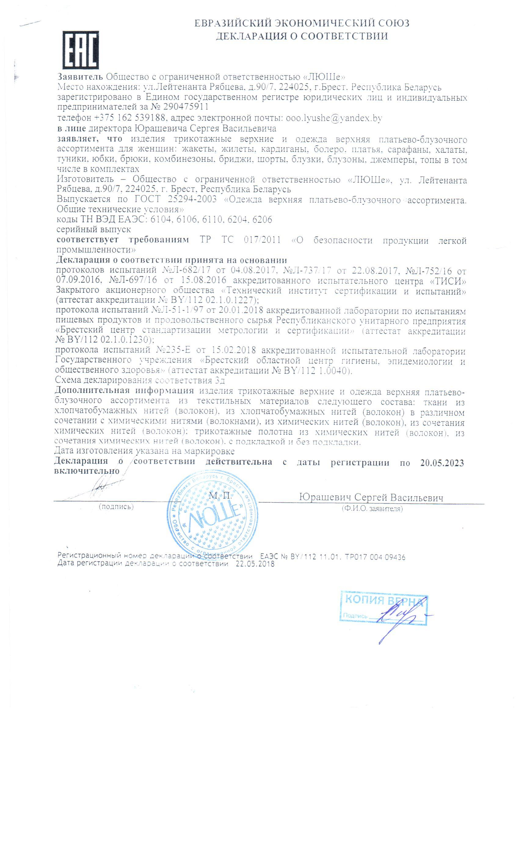 декларация о соответствии