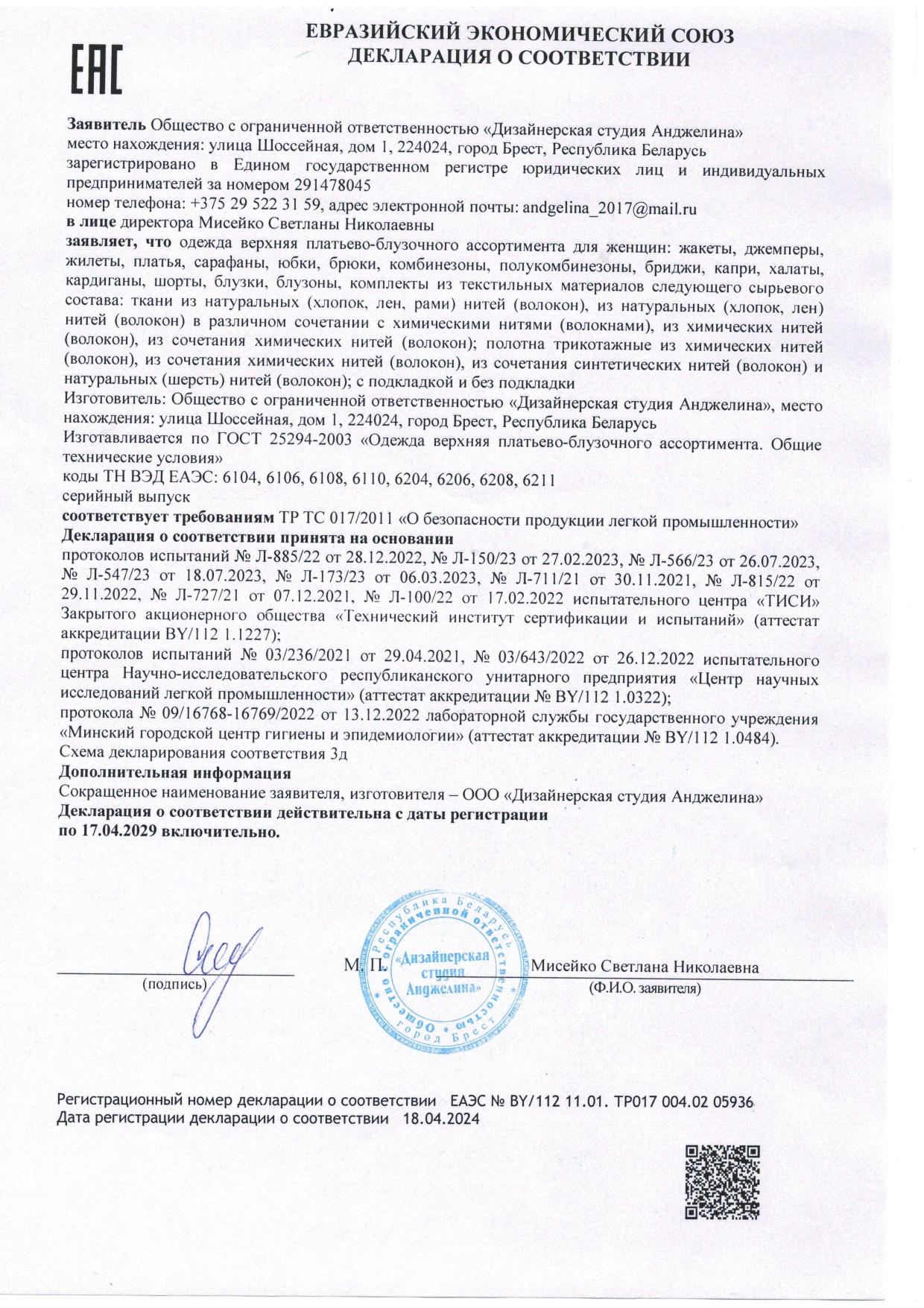 Каждой Декларации соответствия отведено место в специальном электронном реестре. По номеру декларации легко проверить правомерность и актуальность документа.