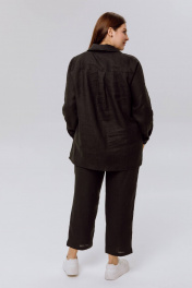 Льняная женская рубашка из коллекции SHLOMO: выполнена из приятного к телу льна, состав: 100% лён. Элегантная женская блузка - это идеальное сочетание стильного и практичного элемента гардероба. Блуза с длинным рукавом и свободным оверсайз кроем обеспечит комфорт в летние дни благодаря дышащему материалу. Прямой крой позволяет носить рубашку как заправленной, так и на выпуск, создавая разнообразные образы, которые подойдут для офиса, на работу, так и для повседневных прогулок. Станет идеальным вариантом как домашний пижамный комплект, прекрасно подойдет для беременных, он удобен для кормящих мам, так как не сковывает движения, подойдет как пляжная рубашка для пляжа, на море. Летняя широкая блуза легко сочетается с любым низом, например, с шортами и брюками из нашей коллекции SHLOMO. Изготовленная из высококачественной ткани, этот батник женский обеспечивает комфорт. Эта красивая блузка черного цвета станет идеальным дополнением к вашему гардеробу. Стиль позволяет использовать блузон как теплой весной, так и осенью, создавая объемный и бохо образ. Эта женская одежда подходит для любого размера и для полных женщин, подчеркивая вашу индивидуальность и добавляя нотку разнообразия в повседневные наряды. Натуральная льняная ткань очень легкая, тонкая и нежная на ощупь. Модная коллекция летней одежды из льна приятно удивит вас и подарит ощущение комфорта даже в самые жаркие дни. У нас собственное белорусское производство. Для нас важно качество наших изделий, поэтому мы выбрали именно лён. Льняные вещи славятся своим качеством и долговечностью. Ткань «дышит», за счет чего в жару в льняной одежде прохладно, а в холод она согревает. Она не электризуется, не вызывает аллергии, имеет антисептический эффект. Очень прочная, устойчива к истиранию, хорошо и достойно выглядит. Лён – это легко и естественно! • на изделиях из натурального льна встречаются утолщения нитей и мелкие узелки, что является особенностью переплетения ткани и не является браком