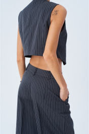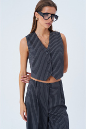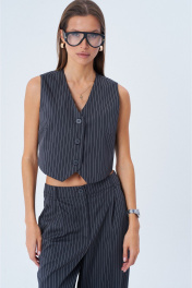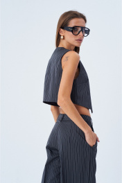 Жилет укороченный из текстиля в полоску свободного кроя SHAM SHAM 1007 графит