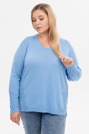 Мягкий и приятный на ощупь джемпер с V-образным вырезом, с деликатным рисунком по рукавам и бокам, прямой свободной формы со скошенными разрезами. Джемпер связан из качественной итальянской пряжи 100% Кашемир. Предлагается большой размерный ряд с 44 по 56 размер. Длина джемпера от плеча 64 – 67 см в зависимости от размера. Рекомендуется химчистка, а также возможна ручная стирка 30 градусов или машинная в режиме Деликатная \ Шерсть.