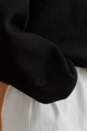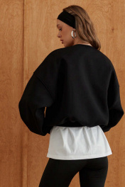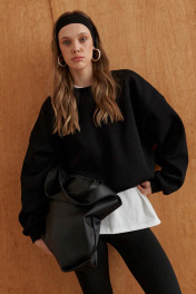 Черный укороченный оверсайз свитшот — твой ключ к дерзкому и лаконичному образу. Идеальный баланс свободного кроя и укороченной длины создает стильный силуэт, который сидит как влитой. На рукаве — тонкая вышивка лого 10DENCY в тон, деталь для тех, кто ценит скрытую эстетику. Плотный хлопок и продуманный объем делают эту модель основой для смелых комбинаций: носи с завышенными джинсами и кроссовками или с юбкой-миди и ботинками. Минимализм с характером. С любовью и заботой о Вас, команда бренда 10DENCY!