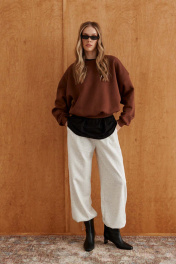 Коричневый укороченный свитшот оверсайз — выбор для тех, кто любит уют и эстетику. Укороченный крой добавляет игривости, а свободный силуэт сохраняет комфорт. Логотип на рукаве, вышитый в тон, подчеркивает внимание к деталям. Этот оттенок станет идеальным компаньоном для джинсов-бойфрендов, кожаных юбок или вельветовых брюк — он легко впишется в расслабленный, но продуманный образ. С любовью и заботой о Вас, команда бренда 10DENCY!