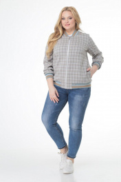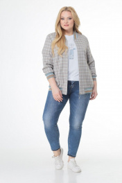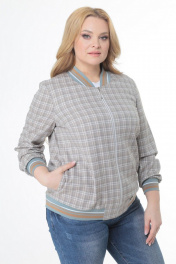 Жакет прямого силуэта из текстиля в клетку с центральной застежкой на молнию. В боковых швах обработаны карманы . Рукав втачной, одношовный . Спинка цельная. Горловина округлая оформлена довязом. По низу бомбера и рукавов так же довяз в поддержку горловины. Длина жакета (54р): 69 см Длина рукава (54р): 61 см