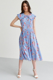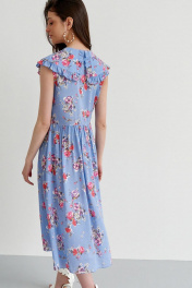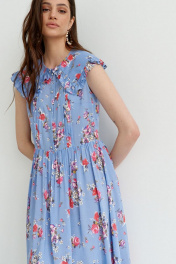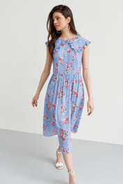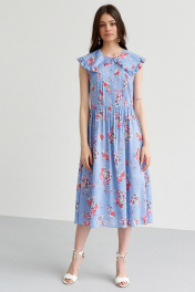 Летнее платье с треугольным вырезом, сборками и рюшами C. of PAPAYA NEW 1599-B голубой