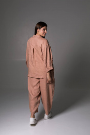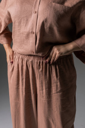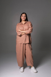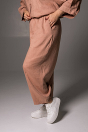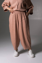Льняные брюки женские из коллекции SHLOMO выполнены из приятного к телу льна, состав: лён 65%, вискоза 35%. Брюки бананы станут незаменимым элементом вашего гардероба. Женские джоггеры с высокой посадкой вписывается в повседневный гардероб, а также подходят для дома – домашние брюки и для сна. Широкие однотонные штаны оверсайз багги легко сочетаются с любым верхом. Сочетайте брюки палаццо с нашими льняными рубашками, создавая легкий классчиский льняной костюм. Эти бежевые брючки идеально подходят для лета и межсезонья, они станут отличным выбором для активного отдыха на море или на пляж. Они очень легкие и позволяют коже дышать, что делает их идеальными для жаркой погоды. Стильный штаны подойдут для беременных, так как не сковывают движения, а резинка по поясу делает их еще более комфортными. Вы можете носить их в качестве праздничных или нарядных брюк, а также использовать для создания офисного образа, что делает их универсальной частью любого гардероба. Широкие брюки на резинке облегчат создание стильного образа в осенний период. Эти алладины обеспечивают очень комфортную посадку и подойдут для прогулок по городу. Идеально подойдут как школьная одежда, благодаря своему дизайну и материалу. Эти стильные шаровары для женщин доступны в различных размерах, что позволяет каждой даме найти свой идеальный вариант. У нас собственное белорусское производство и большой выбор женской одежды больших размеров, среди нашего ассортименты вы сможете найти наряд на новый год и на корпоратив. У нас собственное белорусское производство. Для нас важно качество наших изделий, поэтому мы выбрали именно лён. Льняные вещи славятся своим качеством и долговечностью. Ткань «дышит», не электризуется, не вызывает аллергии, имеет антисептический эффект. Очень прочная, устойчива к истиранию, хорошо и достойно выглядит. Лён – это легко и естественно! • На изделиях из натурального льна встречаются утолщения нитей и мелкие узелки, что является особенностью переплетения ткани и НЕ является браком.