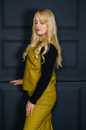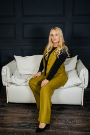 Желтый костюм из текстиля для повседневных образов БелКредо 23с124-р60 оливковый