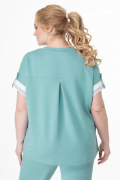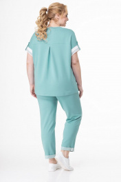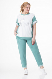 Летний трикотажный костюм блуза с рельефами и брюки Кэтисбел 2519 белый-мята
