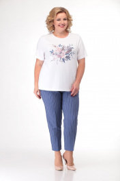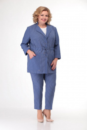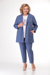 Летний комплект жакет, блуза и брюки из комбинированного текстиля Кэтисбел 3464 василек