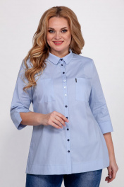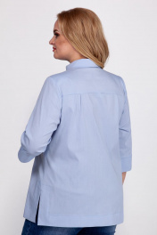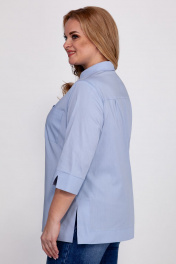 Блузка женская, удлинённая, рубашечного покроя, свободного силуэта. Застёжка центральная, на пуговицы. Воротник рубашечного типа на отрезной стойке. Рукав втачной, длинной 3/4, низ рукава оформлен притачной манжетой, продолжение рукава. На полочке два накладных кармана в области груди. По спинке отрезная кокетка, по основе заложены две не глубокие складки. В боковом шве глубокие разрезы, оформлены разрезы цельнокроеной обтачкой включая низ изделия. Низ блузки отстрочен отделочной строчкой шириной 5 см. Замеры 52-54-56р. Длина блузки - 70см. Длина рукава - 43,5 см, ширина рукава- 40 см. Обхват груди (ОГ)- 116- 120-124см. Обхват бедер (ОБ)- 120-124-128см. 58-60-62р-ры. Длина блузки - 70 см. Длина рукава - 43,5 см, ширина рукава- 44 см. Обхват груди (ОГ)- 128-132-136см. Обхват бедер (ОБ)- 132-136-140см.