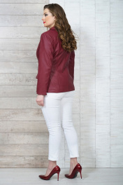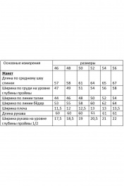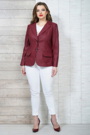 Жакет полуприлегающего силуэта с рельефными швами по переду и спинке. Спинка со средним швом. По рельефным швамотделочные строчки. Рукав втачной двухшовный длинный, по локтевому шву рукава внизу разрез. По переду накладные карманы с клапанами. Застежка жакета на 2 большие пуговицы и 2 петли. Воротник стояче-отложной с лацканами. Застежка однобортная на две петли и две пуговицы. Жакет из экокожи на подкладке.