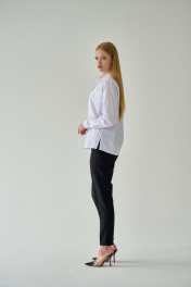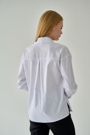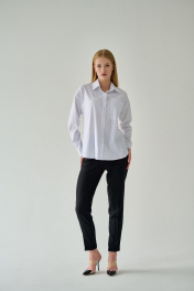 Блуза из хлопка - отличный вариант как для офиса, так и для прогулочного образа. Прямой силуэт, классический отложной воротник на стойке, по переду застёжка на петли и пуговицы, длинный спущенный рукав на притачной манжете, накладной карман на левой полочке - все эти детали делают рубашку универсальной и отвечающей всем требованиям дресс-кода. По спинке кокетка, а для свободы движения предусмотрена складка. Разрезы внизу боковых швов позволят создавать различные образы. Натуральность состава ткани обеспечит комфорт, воздухопроницаемость, гигроскопичность. Рекомендации по уходу - на этикетке. Размеры соответствуют стандартной размерной сетке. Длина рукава 54см. Длина по спинке 66,5см.
