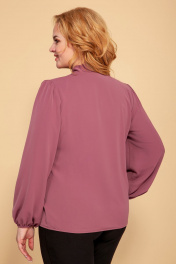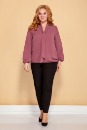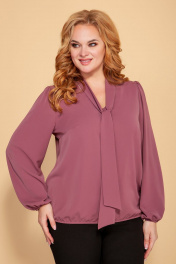 Блуза женская, свободного кроя, V-образный вырез горловины с притачным "галстуком". Рукав длинный, широкий за счет сборки по окату и низу рукава. Низ блузы и низ рукава присобран на рюшкувискоза 95%, спандекс 5%