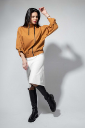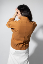 Куртка из плотной хлопковой ткани типа джинс. По низу куртки установлена широкая резинка. Рукав втачной, расширенный. Плечо спущенное. В рукавах имеются кнопки и хлястики для подворота. Куртка на молнии. Вся фурнитура металлическая.