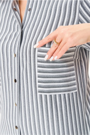 Стильное платье-рубашка: идеальный выбор для вашего гардероба Ищете платье, которое объединяет в себе элегантность и комфорт? Обратите внимание на наше стильное платье-рубашку прямого силуэта, выполненное из качественной ткани в полоску. Этот уникальный дизайн позволяет создать лёгкий и естественный образ, который будет уместен как на работе, так и на вечерних выходах. Преимущества платья: - Свободный крой: обеспечивает максимальный комфорт и свободу движений, позволяя вам чувствовать себя уверенно в любой ситуации. - Асимметричный перед: с наклонным подрезом и нагрудными вытачками добавляет интересные акценты и визуально удлиняет силуэт. - Практичные карманы: две пары накладных карманов позволяют удобно хранить мелочи, не теряя при этом стиль. - Элегантная застёжка: центральная бортовая застёжка на кнопки придаёт платью современный вид и удобство в носке. - Рубашечный воротник: классический элемент, который добавляет изысканности и подходит для любого стиля. - Разрезы в боковых швах: обеспечивают дополнительную вентиляцию и свободу движений. - Рукав 3/4: идеален для любого времени года, сочетая стиль и практичность. - Съёмный пояс: позволяет регулировать посадку платья, подчеркивая вашу талию и создавая эффектный силуэт. Не упустите возможность добавить это платье-рубашку в ваш гардероб. Оно станет универсальным решением для множества образов, позволяя вам выглядеть стильно и чувствовать себя комфортно в любой ситуации. Закажите сейчас и выделяйтесь из толпы!