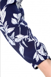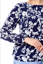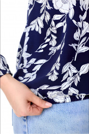 Элегантная повседневная блуза в синих тонах с белым принтом. Эта модель сочетает в себе изящный цветочный принт и практичный крой, идеально подходящий для любого типа фигуры. Натуральная основа ткани (вискоза) обеспечивает комфорт в течение всего дня. Силуэт: Прямой, свободный. Низ блузы и манжеты рукавов собраны на мягкую резинку, что позволяет регулировать напуск и подчеркивать талию. Детали: Округлый вырез «лодочка», втачной длинный рукав, отсутствие застежек (надевается через голову). Текстура: Легкий текстиль, не просвечивает, обладает матовым блеском. Советы по стилю и уходу: С чем сочетать: Благодаря сине-белой гамме блуза идеально смотрится с голубым денимом, классическими белыми брюками или темно-синей юбкой. Сезонность: Универсальная модель для любого времени года. Уход: Бережная стирка при 30°C. Вискоза может слегка мяться, поэтому рекомендуется глажка с паром в режиме «шелк/деликатные ткани».