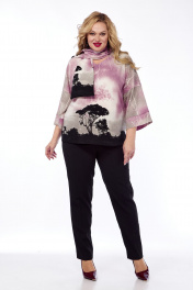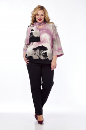 Демисезонная трикотажная блуза с пейзажным принтом Abbi 4054 фиолетово-черный