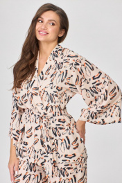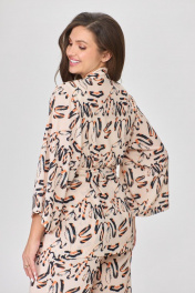 Комплект женского кимоно состоит из жакета и брюк - отличный выбор для тех, кто уважает стиль, комфорт и удобство. Изготовленный из легкой ткани, верх кимоно свободного силуэта, планка по центру переда переходит в цельнокроеную стойку. Линия плеча и проймы спущены , рукав три четверти, по низу рукава широкие манжеты, фиксируется на талии тонкими внутренними поясками. Тонкие внутренние пояски на талии обеспечивают удобство и можно сверху завязывать широкий пояс. Брюки палаццо, пояс на резинке ширина пояса 4см, по поясу в области резинки три отделочные строчки. Это непревзойденный вариант для женщин, которые следят за своим стилем. Брюки женские праздничные идеально подходят для летнего офиса, а также вечернего выхода. Нотки турецкого стиля в ритме современных тенденций. В отличии от костюма с юбкой, он сочетает в себе японское наследие и современный турецкий дизайн. Приобретая женский брючный комплект Abbi вы получаете, дизайнерский костюм, кимоно с длинными рукавами и широкими брюками, выполненными из легкой ткани, которая не сковывает движения в жаркую погоду. Комфортная и элегантная одежда для повседневной носки или для посещения пляжа. Универсальный костюм, который можно носить как деловой, так и нарядный стиль. Широкий выбор размеров и цветов позволит выбрать идеальный вариант именно для вас. Оригинальность и стиль - гарантированы. Костюм в других цветовых решениях доступен для преобретения по артикулом 5005. Замеры: ОГ-обхват груди; ОТ-обхват талии; ОБ-обхват бедер; ДИ-длина изделия; ДР-длина рукава; ДИВ-длина изделия внутренний шов; ШБ-ширина брючин. Размер 44. ОГ-100; ОТ-84; ОБ-102; ДИ-75,5; ДР-50. ОТ-62 ; ОБ-102 ; ДИ-106; ДИВ-76 ; ШБ-59 . Размер 46. ОГ-104 ; ОТ-88; ОБ-106; ДИ-76; ДР-50. ОТ- 66; ОБ-106 ; ДИ-106,5; ДИВ-76,5 ; ШБ-59,5 . Размер 48. ОГ-108 ; ОТ-102; ОБ-110; ДИ-76; ДР-50. ОТ- 70; ОБ-110 ; ДИ-107; ДИВ-77 ; ШБ-60 . Размер 50. ОГ-112 ; ОТ-106; ОБ-114; ДИ-76,5; ДР-50. ОТ-74 ; ОБ-114 ; ДИ-107; ДИВ-77 ; ШБ-60 . Размер 52. ОГ-116 ; ОТ-110; ОБ-118; ДИ-76,5; ДР-50. ОТ-78 ; ОБ-118 ; ДИ-107,5; ДИВ-77,5 ; ШБ-60,5 . Размер 54. ОГ-120 ; ОТ-114; ОБ-122; ДИ-76,5; ДР-50. ОТ-82 ; ОБ-122 ; ДИ-107,5; ДИВ-77,5 ; ШБ-60,5 . Размер 56. ОГ-124 ; ОТ-118; ОБ-126; ДИ-77; ДР-51. ОТ-86 ; ОБ-126 ; ДИ-108; ДИВ-78 ; ШБ-61 .
