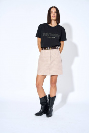 Джемпер женский из трикотажного полотна, прямого силуэта. Перед с вышивкой. Рукава втачные, одношовные, короткие. Горловина переда и спинки круглая, с притачной бейкой.