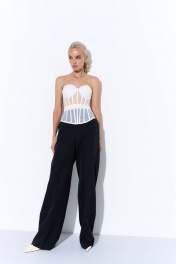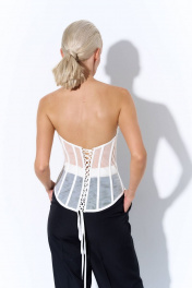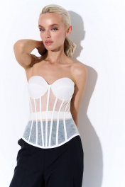 Удлиненный корсет из сетки с фигурной линией низа. Чашки на поролоне с косточками. Застежка на шнуровку. Корсет – яркий тренд нынешнего сезона. Корсет отлично подойдет для коктейльных выходов, при этом его легко вписать в повседневные образы, сочетая с джинсами и брюками-карго. Корсет можно использовать, как самостоятельный предмет одежды либо, как аксессуар, надевая вторым слоем поверх рубашек или платьев.