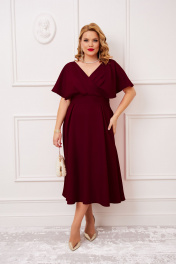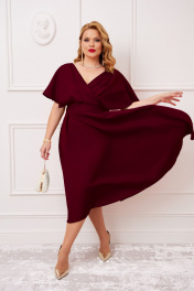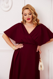 Красное платье из роскошной тканей с запахом AGATTI 5655-2 бургундии