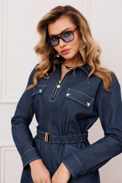 Стильное и элегантное джинсовое платье, выполнено из высококачественной ткани премиум класса с добавлением хлопка и вискозы. Платье по переду с молнией застежкой (молния 20 см) и нагрудными клапанами декорированные пришивными пуговицами. Платье с функционалами карманами и клапанами. Изюминка платья - белая отделочная строчка, что придет модели особый стиль и шарм. В комплекте с платьем идет съемный пояс на резинке с металлической дизайнерской пряжкой. Модель стильная и практичная, прекрасно дополнит ваш гардероб, вы будете выглядеть неотразимо.