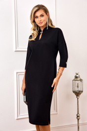 Элегантное и нарядное платье, выполнено из высококачественной трикотажной ткани (ткань мягкая, приятная к телу, хорошо тянется). Горловина стойка с вырезом-капелькой и отделкой из блестящего канта с застежкой дизайнерской брошью, придает модели особый шарм. Рукав втачной, спущенный с манжетой и пришивным декором в виде бантика. Платье с левого бока по низу с небольшим разрезом. Модель стильная и практичная, невероятно стройнит, прекрасно подойдет для торжественного мероприятия, вы будете выглядеть неотразимо и роскошно.
