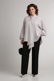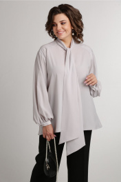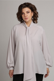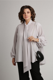 Блуза с воротником аскот и пышными рукавами Aira Style 24-052 серая_роза