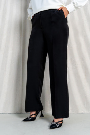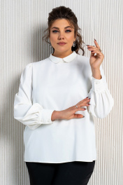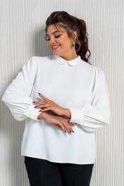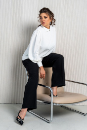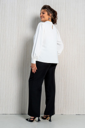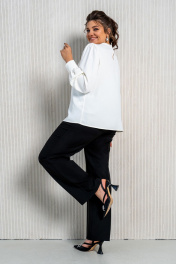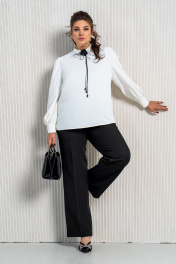 Деловой комплект блузы и брюк с струящейся тканью Aira Style 24-211 молочно-черный