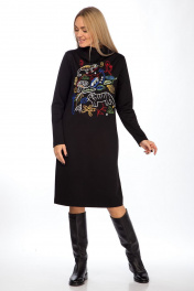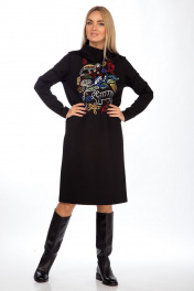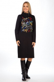 Платье прямого силуэта с цельнокроеной стойкой. Перед декорирован вышивкой. Рукава втачные, одношовные. Платье без застежки и без карманов. Длина платья по среднему шву спинки со стойкой – р46-105,5, р48-105,5, р50-108 Длина рукава во всех р-ах -60,5 Ширина рукава на уровне глубины проймы ½ - р46-17,3, р48-18, р50-18,7 Ширина плеча со стойкой – р46-12,7, р48-12,7, р50-13 ОГ ½ - р46-51, р48-53, р50-55 ОТ ½ - р46-51, р48-53, р50-55 ОБ ½ - р46-53, р48-55, р50-57