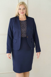 Деловой комплект блуза, жакет и юбка: классика с рельефами Alani Collection 1872 синий