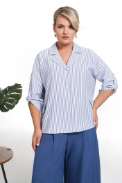 Жакет прямого, свободного силуэта, с застёжкой на петли, пуговицы, со спущенной линией плеча, по боковым с разрезами и декоративными клапанами. Перед с отложными лацканами. Рукава втачные, одношовные, длиной 3/4 с патами фиксируемые длину рукава на петлю, пуговицу. Воротник отложной с отворотом. Брюки широкие, свободные, длинные, с притачным поясом по спинке на резинке, с отрезными боковыми частями понизу с мягкими встречными складками. Передние части с застроченными мягкими складками от верха и косыми боковыми карманами.