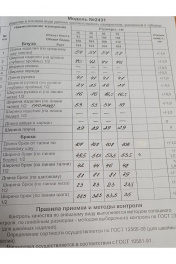Блуза прямого, свободного силуэта, со спущенной линией плеча, с застёжкой по притачной планке на петли, пуговицы. Перед по низу с перекрутом. Рукава втачные, одношовные, длинные, понизу с притачными широкими манжетами. Воротник стойка. Брюки прямого силуэта, на притачном поясе со шлёвками (Р52-56 с резинкой по боковым), по боковым с вертикальным декоративным элементами. Застежка типа «гульфик» на молнию и по краю пояса на петлю, пуговицу. Передние части с фигурными боковыми карманами. Задние части с притачной кокеткой.