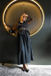 Комплект женский 3-х предметный состоит из блузки, блузы и юбка-брюки. Блузка прямого свободного силуэта, с застёжкой на петли, пуговицы, со спущенной линией плеча, с фигурной линией низа. Перед с притачными кокетками. Спинка с притачной кокеткой и мягкой складкой по шву соединения. Воротник стояче-отложной на отрезной стойке застёгивающийся на петлю, пуговицу. Блуза полуприлегающего силуэта, с втачными, одношовными, длинными рукавами. Горловина округлой формы с бейкой. Юбка-Брюки широкие свободного силуэта, с притачным поясом на резинке. Передние части с мягкими складками от пояса и косыми боковыми карманами. Пояс идет в комплекте.( В разных партиях пояс может отличатся от фото)