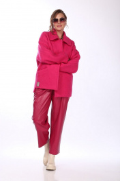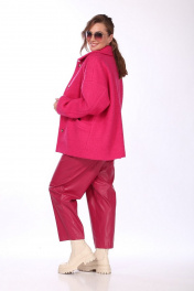 Комплект женский, состоящий из жакета и брюк. Жакет из натуральной шерсти свободной формы на подкладке с центральной застежкой доверху на пришивные кнопки и стояче-отложным воротником на отрезной стойке и фигурным низом. Перед с наклонными рельефами и карманами с листочками в швах, спинка со средним швом, рукава рубашечного типа с наклонными рельефами. По низу правой части переда декоративная нашивка. Брюки из искусственной кожи с вискозной изнанкой на притачном поясе со складками по поясу и боковыми карманами, задние половинки с вертикальными рельефами и имитацией кармана с листочкой на правой части. Пояс сзади на резинке. измерения в готовом виде на 54 56 58 длина жакета по середине спинки 69 см ширина жакета под проймами 54р-66см, 56р- 68см, 58р- 70см ширина жакета на уровне бедер 54р- 64см, 56р- 66см, 58р- 68см длина брюк по боковому шву 99см ширина по талии 54р- 94см , 56р- 96см, 58р-98см ширина по бедрам 54р -61см, 56р- 63см, 58р- 65см