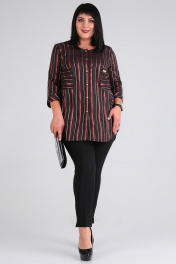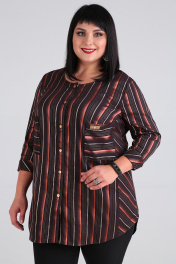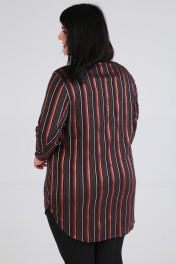 Блуза из полоски  незаменима в этом сезоне как никогда. Перед блузы – с бочком по косой и нагрудной вытачкой, выходящей из него, карман накладной с поперечной полоской, горловина – круглая. По центру переда - функциональная застежка на 6 пуговиц и 6 пробивных петель. Спинка без среднего шва, рукав 3\4, двухшовный с манжетой по косой. Низ блузы спереди и сзади закругленный. Эта простая модель поистине универсальна и подходит как для повседневной носки, офиса, так и для различных мероприятий. Длина изделия - 84 Длина рукава - 48