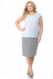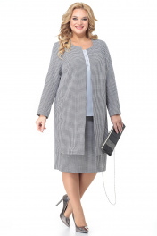 Нарядно-повседневный комплект ,состоит из жакета, юбки и блузы. Элегантный жакет без подкладки дополнен прорезными карманами, классический рисунок ткани «гусиная лапка», такие вещи добавляют элегантность и строгость. Блуза из однотонной ткани свободной формы, рукав короткий. Округлый вырез горловины с элегантной небольшой планкой на пуговицах, завершает собой игру простых чистых линий кроя. Очаровательная модель, невероятно легкая и воздушная. Цвет, в котором выполнена блузка, подчёркивает гармонию линий и сдержанный шик модели. Отличный вариант для офиса и вечернего гардероба. Завершает образ комфортная юбка с поясом на резинке, в области боковых швов. Юбка со шлицей, на подкладке. Комплект займет достойное место в вашем гардеробе. Длина блузы - 62 Длина юбки - 66 Длина рукава кардигана - 87, длина рукава кардигана 61 Длина рукава блузы - 7