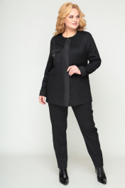 Эффектный костюм подойдёт как для торжественного мероприятия, так и для повседневного похода на работу. Комплект двойка состоит из жакета и брюк. Текстильная однотонная ткань с хорошим стрейч-эффектом добавит комфорт при носке изделия. Этой осенью безумно актуальными являются наряды со спущенными плечами. Жакет удлинённый полуприлегающего силуэта без воротника. Спинка со средним швом. По переду жакета есть рельефные швы от плеча и большой накладной карман с клапаном, декорированный стильной нашивкой. Застёжка на молнию, которая прикрывается планкой и фиксируется магнитами. Рукав втачной, длинный, двухшовный, по низу с манжетой. Жакет без подкладки. Удобные и комфортные брюки прямого силуэта со стрелками в этом комплекте - незаменимая в гардеробе вещь, которая подчеркнёт всю утончённость женской натуры и позволит всегда чувствовать себя комфортно. Перед - с застёжкой на молнию и пуговицу, карманами-хулиганами. Пояс в области боковых швов дополнен эластичной тесьмой. Элегантная повседневная модель для города.Длина жакета - 78 см.Длина рукава со спущенным плечом - 76 см.Длина брюк - 105 см. Длина брюк - 105 Длина жакета - 78