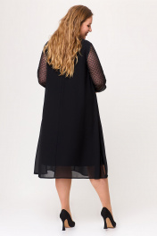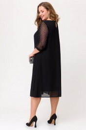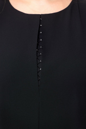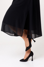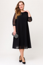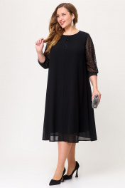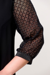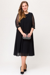 Эффектное шифоновое женское платье А–силуэта. Этот праздничный, но в то же время элегантный наряд из воздушной ткани украшен рукавами из сетки с блестящим напылением в виде страз и способен подчеркнуть индивидуальность и благородство своей обладательницы. На полочке по среднему шву обработана имитация капельки со вставкой из сетки. На спинке обработана капелька на навесную петлю и пуговицу. По низу рукава пришита декоративная резинка. Такое замечательное нарядное черное платье способно стать незаменимым элементом в гардеробе современной модницы.  Силуэт платья прекрасно скрывает нюансы фигуры и подчеркивает достоинства. В наличии платья больших размеров для женщин плюс сайз.  Длина изделия - 112 Длина рукава - 45
