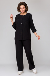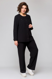 Демисезонный черный костюм из вискозы и текстиля с брюками и жакетом Algranda А3972
