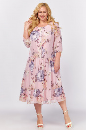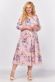 Легкое, воздушное платье из шифона на трикотажной подкладке для женщин подарит ощущение летнего бриза даже в самый знойный день. Этот элегантный наряд обязательно привлечет внимание окружающих! Нежный дизайн ткани добавляет шарм и делает его по-настоящему женственным. Крой А-силуэт нарядного изделия подходит как для повседневного образа, так и для особых случаев. Силуэт модели выделяет женственность фигуры и делает образ стильным. Платье создано для тех, кто предпочитает удобство и стиль в одном флаконе. Миди-длина платья и воланы подчеркнут грацию фигуры и добавят загадочность Вашему образу. Перед платья частично на застежке на петли и пуговицы. Рукав втачной, 3/4, по низу на резинке. Выбрав эту модель, Вы точно будете выглядеть неповторимо на любых мероприятиях! Длина изделия - 122 Длина рукава - 45