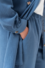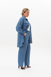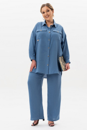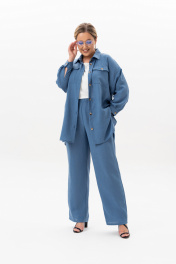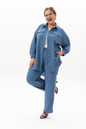 Ищешь стильный и универсальный костюм на любой случай? Женский брючный костюм из лёгкой ткани – превосходное решение для летнего гардероба! В костюм входят брюки на резинке с карманами-хулиганами и рубашка с длинным рукавом и застежкой на петли и пуговицы. На рубашке обработаны нагрудные накладные карманы с клапаном. Рукав на манжете. Оба изделия можно носить как самостоятельные и вписывать их в абсолютно любой образ, будь то деловой, офисный, повседневный городской, спортивный, пляжный или вечерний. Костюм сшит из невесомого материала, в состав которого входят хлопок и лен. Свободный, прямой крой хорошо садится на любой рост и тип фигуры, худых и полных, высоких и невысоких женщин и девушек. Модель оверсайз позволит чувствовать себя комфортно и удобно. Эта необычная однотонная двойка без принта не выйдет из моды и будет актуальна во все времена, подойдёт на все случаи жизни. В наличии ультрамодные и классические расцветки. Жакет и брюки состоят из натуральной и легкой ткани, которая позволит Вашей коже дышать в жаркие дни. Большие размеры и свободный крой обеспечат максимальный комфорт и свободу движений. Длина брюк - 105 Длина жакета - 90 Длина рукава с плечом - 77