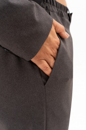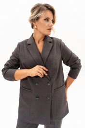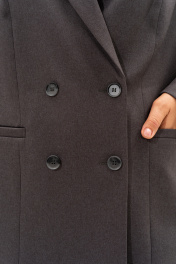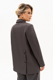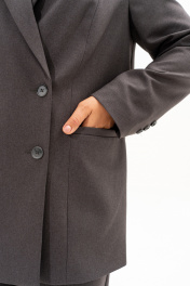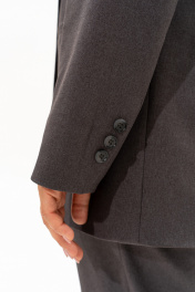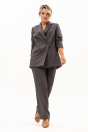 Элегантный женский костюм, в котором классика встречается с современными акцентами. Жакет выполнен в двубортном исполнении с выразительным пиджачным воротником, подчеркивающим строгость и стиль. Рельефы на полочках от плечевого шва придают силуэту структурность, а прорезные карманы в листочку добавляют практичности и утонченности. Особое внимание привлекает спинка: асимметричный рельеф на правой части, переходящий в шлицу, оформленную декоративными пуговицами — неожиданный и эффектный штрих. Втачные двухшовные рукава завершены аккуратными шлицами с тремя пуговицами, что добавляет костюму благородства и внимания к деталям. Брюки — лаконичные, с функциональными карманами и гульфиком на молнии. Удобный пояс с эластичной тесьмой по бокам делает посадку комфортной, не нарушая внешней строгости образа. Этот костюм — идеальное сочетание женственности, силы и комфорта. Он подойдет как для деловой встречи, так и для повседневного выхода, где важна уверенность и стиль. Длина рукава - 62 Длина брюк - 105 Длина жакета - 77