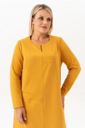 Удобное, стильное, красивое платье из трикотажного полотна прямого силуэта,слегка расширенного к низу. Платье отлично сядет на любую фигуру. Полочка асимметричного кроя. С одной стороны обработан карман-имитация с втачной листочкой, с другой - карман в боковом шве. Капелька по среднему шву полочки. На спинке, в среднем шве, обработана застежка (потайная молния). Рукав длинный. Простое в уходе, универсальное, базовое платье больших размеров неоднократно порадует вас! Платье легко комбинировать с другими предметами гардероба, добавляя акценты и создавая стильные многослойные образы. Модель очень хорошо стройнит и скрывает неровности фигуры. Красота в простоте, так можно сказать, про это платье, в котором Вы будете себя уверенно чувствовать в любой ситуации, можно носить и в офис, и на прогулку, и в ресторан. Длина изделия - 110 Длина рукава - 60