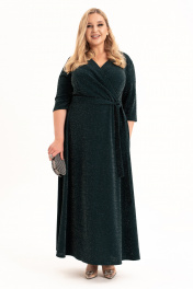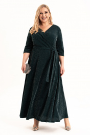 Нарядное платье на запах - это элегантный выбор для любой женщины, подростка или девушки, идеальное сочетание стиля и комфорта. Длинное вечернее платье сочного изумрудного цвета из стрейчевого трикотажного полотна с люрексом. Ткань мягкая, очень приятная к телу. Верхняя часть платья переда и спинки отрезные по линии талии. Лиф переда с эффектным запахом и рельефным бочком. Нижняя часть платья расширена к низу. Рукав втачной, длиной ¾. Платье со съёмным поясом. Съемный пояс и закрытые плечи выгодно подчеркивают женственность фигуры, а рукава длиной три четверти и пикантный V-образный вырез добавляют неповторимости вашему образу. Выполненное из премиальной ткани с блеском, платье представлено в различных размерах. Это универсальное платье подойдет для любого случая: будь то деловая встреча, вечерняя прогулка или особенный праздник. Тренд сезона 2025-2026года. Его можно носить в любое время года, от весны до зимы. Внимание к деталям и трендовый дизайн делают его идеальным выбором для множества мероприятий, включая свадебные фотосессии, ресторанные посиделки или корпоративные вечера. Платье нарядно, кокетливо и подходит как высоким, так и невысоким девушкам. Независимо от вашего стиля или сезона, наше платье будет идеальным выбором. Длина изделия - 132 Длина рукава - 42