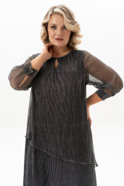 Это итальянское платье- имитация костюма нарядного стиля больших размеров станет отличным выбором для тех, кто ценит элегантность и стиль. Платье сочетает в себе комфорт и долговечность. Ткань "плиссе" придает изделию оригинальную рельефную текстуру, которая делает его особенно привлекательным. Основная особенность этого платья — силуэт в виде трапеции, который подходит для разных типов фигур, а также каплевидный декор по горловине полочки. Длина юбки — миди. Платье предназначено для женщин плюс сайз и станет идеальным выбором для вечерних мероприятий, новогодних праздников, свадеб или юбилеев. Благодаря универсальному дизайну ее можно сочетать с различными нарядами. Это отличный подарок для жены, мамы, сестры или девушки. Платье украшено брошей-цветком и съемным поясом, которая добавляет элегантности и шарма, и ее можно заменить на другие аксессуары, адаптируя наряд под разные события и настроения. Легкая трикотажная подкладка делает его еще более комфортным, а рукава 3/4 и рубашечный манжет с застежкой на петлю и пуговицу делают платье подходящим для большинства женщин. Выбирая это платье больших размеров , Вы получаете не только стильное и элегантное платье, но и качественное удобное изделие, которое скрывает все неровности фигуры и будет Вашим верным спутником на любых праздниках . Длина изделия - 118 Длина рукава - 54