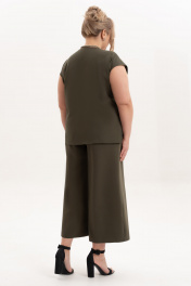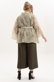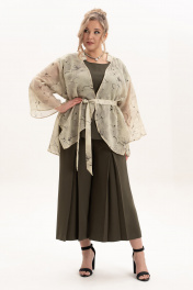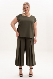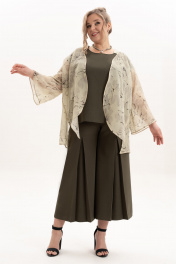 Прекрасный комплект, в состав которого входят брюки кюлоты, блуза и шифоновый кардиган. Лёгкая удлинённая накидка, блуза и кюлоты подходит для девушек любого возраста. Это универсальный комплект, который станет незаменимым в вашем гардеробе. Костюмная ткань, c которой пошиты кюлоты с хорошим стрейч-эффектом добавит комфорта при носке изделия. Кюлоты выполнены в стиле палаццо с укорочённой длиной, что делает её идеальной для любой поры года. Кардиган из шифона свободного силуэта с воротником стойка. В комплект к накидке идёт съёмный пояс. В боковых швах накидки есть небольшие, слегка переходящие на перёд разрезы. Блуза выполнена с приятной на ощупь ткани. Спущенная линия плеча в сочетании с круглой горловиной невероятно женственная и изящна. В боковых швах также есть разрезы. Удобные и комфортные брюки кюлоты в этом комплекте- незаменимая в гардеробе вещь, которая подчеркнёт всю утончённость женской натуры и позволит всегда чувствовать себя комфортно. Перёд с застёжкой «молния», карманами в боковых швах, по линии предполагаемой стрелки разведена встречная складка, которая застрочена до линии бедра. Пояс в области боковых швов дополнен эластичной тесьмой. Они идеально сидят на фигуре благодаря свободной резинке, завышенной посадке. Укорочённый свободный крой брюк прекрасно сочетается с различными верхами, позволяя создать повседневные, так и более нарядные образы на свадьбу, день рождения и другие торжества, Длина брюк - 93 Длина блузы - 65 Длина рукава с плечом - 63 Длина рукава кардигана - 66